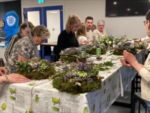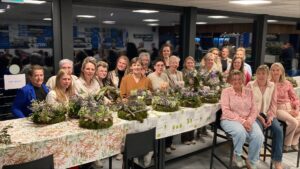 Workshop met Sanne en Rianne namens de Klaproos waarvoor 20 dames zich hadden aangemeld. Vol overgave maakten de dames mooie kransen welke nu in menig huiskamer op de tafel prijkt.