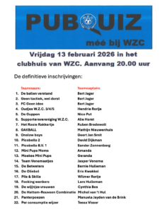 Definitieve inschrijvingen Pubquiz
