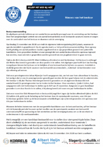 De afgelopen periode maakten we ons zorgen over de continuïteit van het bestuur door aangekondigde vertrekken en openstaande vacatures. In de brief hieronder leest u welke stappen inmiddels zijn gezet, welke bestuursfuncties opnieuw worden ingevuld en hoe u eventueel zelf een kandidaat kunt voordragen. We hopen u te ontmoeten tijdens de ALV op dinsdag 25 november om 20.00 uur.